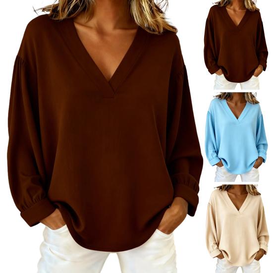 Elegant V-Neck Design: Featuring a stylish V-neckline and long sleeves, this top combines simplicity with sophistication. The design enhances your neckline while maintaining a refined look, making it suitable for both casual and formal occasions. Its regular fit flatters your silhouette without being too tight or loose.