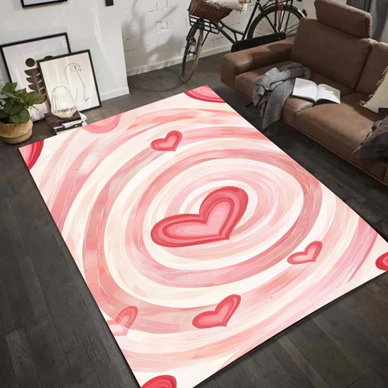 Modern Star Heart Print Rug for Living Room Sofa Bedroom Floor Non-Slip Cozy Home Decor Gift Valentine's Day Carpet