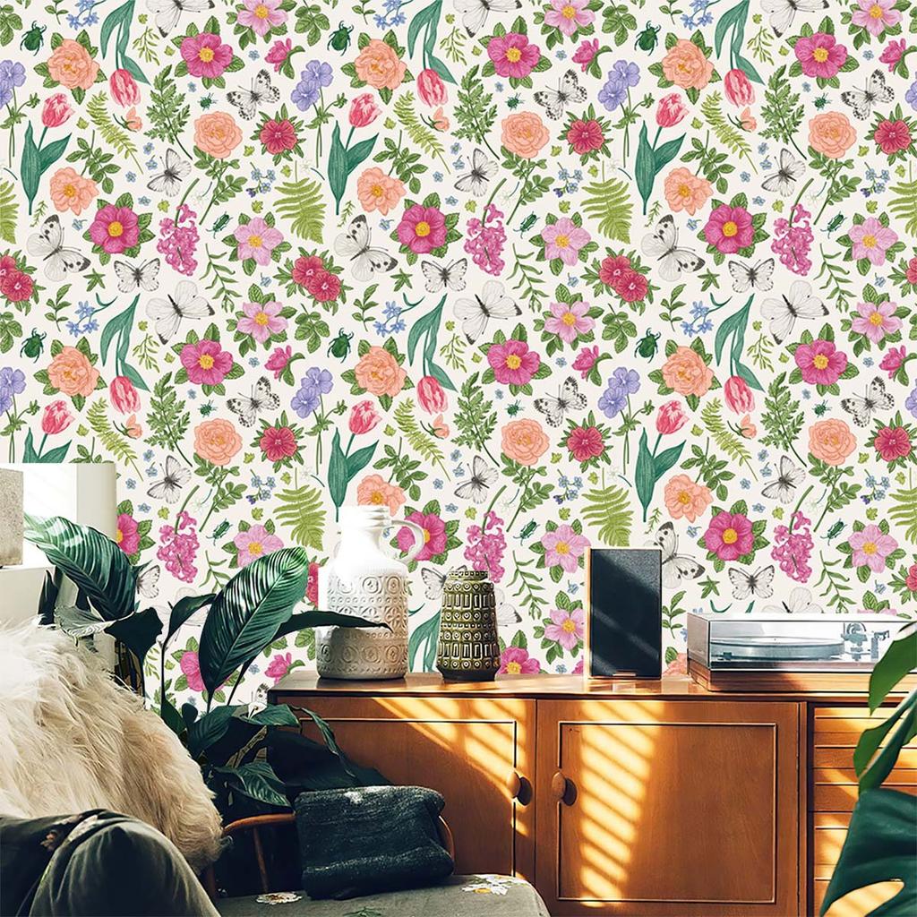 Floral Peel and Stick Wallpaper Boho Multicolor Flower Self Adhesive Removable Wallpaper for Bedroom Cabinets Decor Vinyl Roll