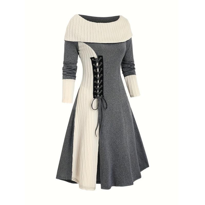 Fashion Women's Dress with Long Sleeved Waist Cinched Pullover Dress