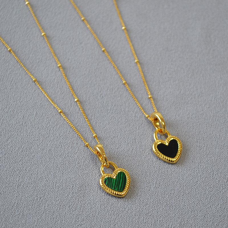 Japanese Korean Style Fashion Niche Design, Simple and Exquisite Retro Black and White Double-sided Love Pendant, Doudou Chain Necklace