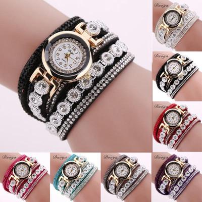 Women Bracelet Leather Quartz Rhinestone Wristwatches Clock Ladies Dress Watches Gift