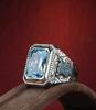 Accessories Geometric Square Aquamarine Zircon Ring For Women Vintage Textured Punk Hip Hop Ring For Men
