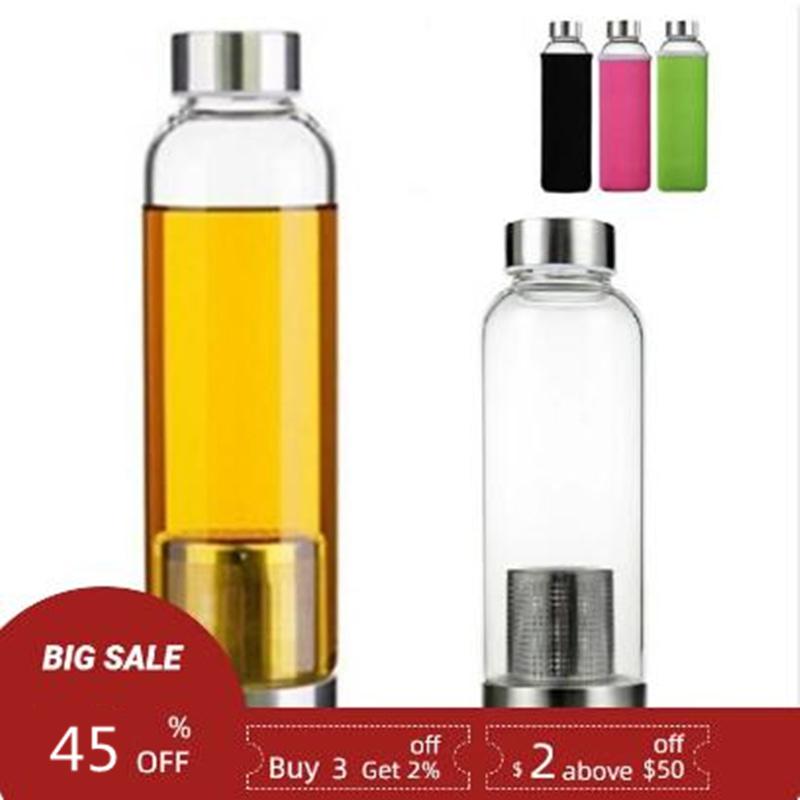 550ml Glass Water Bottle BPA Free High Temperature Resistant Glass Sport Water Bottle With Tea Infuser Nylon Sleeve Protect