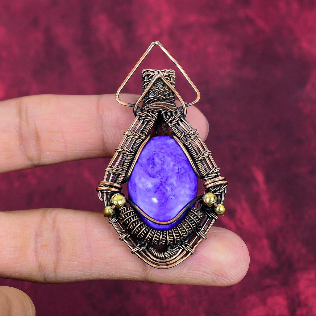 Charoite Pendant Gemstone Pendant Copper Wire Wrapped Pendant Handmade Jewelry