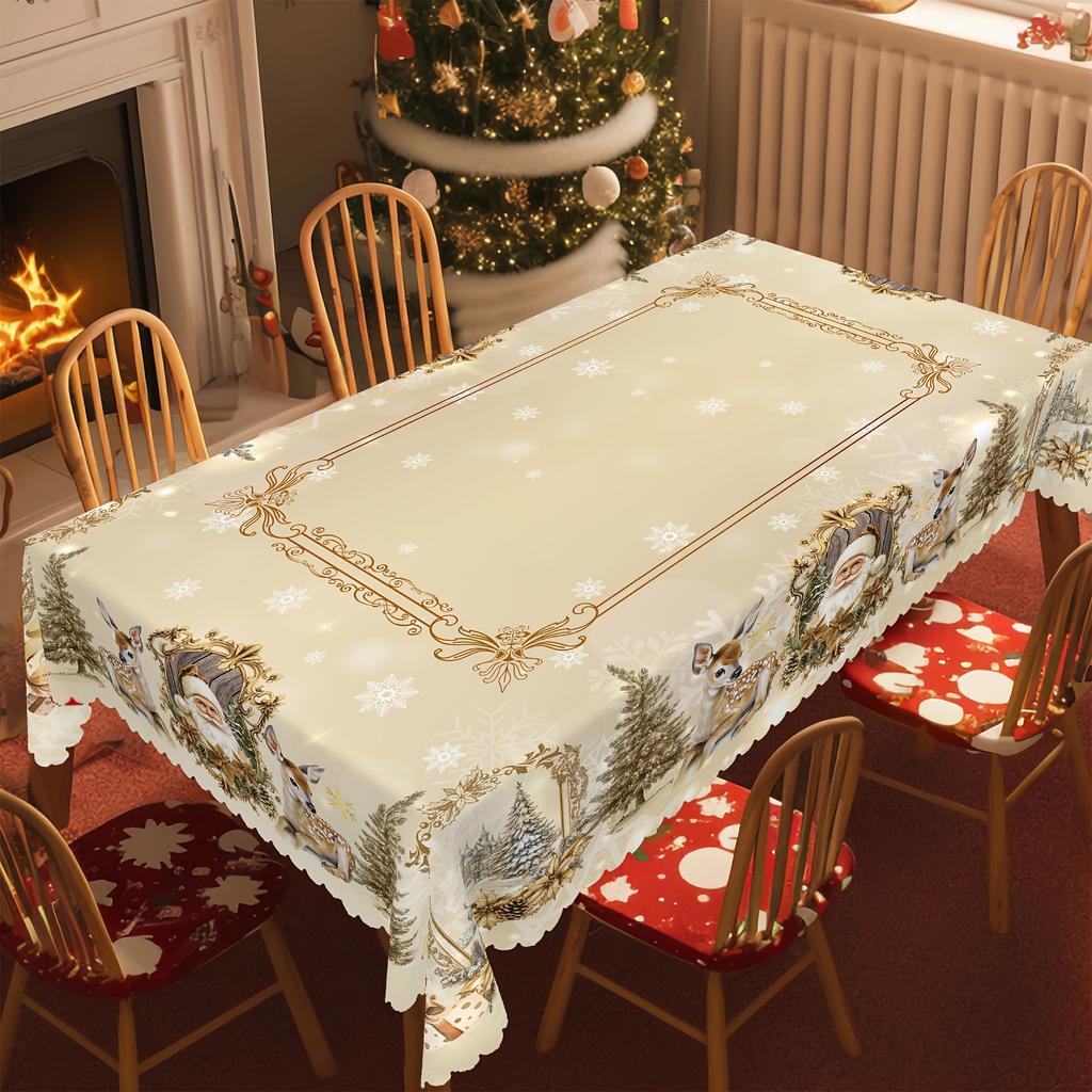 Vintage Santa Reindeer Christmas Tablecloth For Table Decor Party Decor Winter Xmas Tree Dining Table Cloth Christmas Decoration