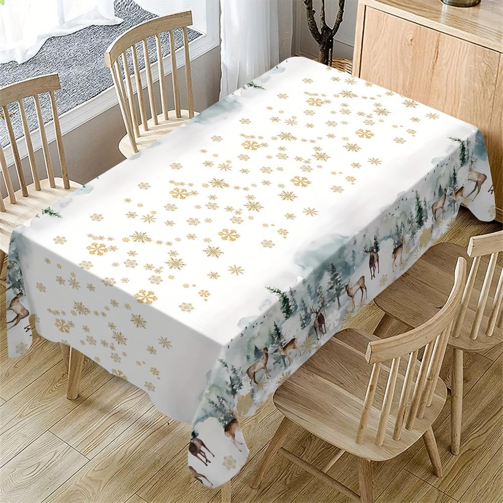 Christmas Reindeer Xmas Tree Snowflake Waterproof Tablecloth Table Decor Winter Kitchen Dining Tablecloth Christmas Decorations