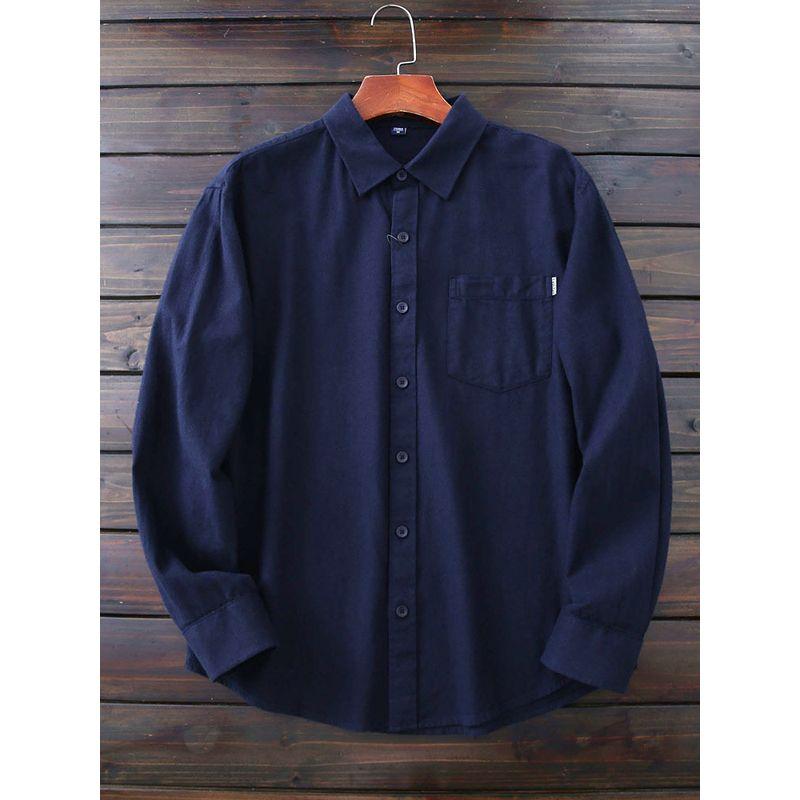 Japanese Style Export Cotton Washed Flannel Shirt Men Fall Lapels Casual Pure Color Long Sleeve Shirt Coat