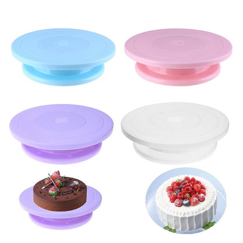 1pc Plastic Cake Plate Turntable Rotating Anti-skid Round Cake Stand Cake Decorating Rotary Table Kitchen DIY Pan Baking Tool
