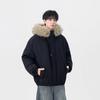 51 Hip-Hop American Retro Lazy Style Large Fur Collar Workwear Cotton Jacket for Men, Winter Thickened Warm Loose Cotton Coat