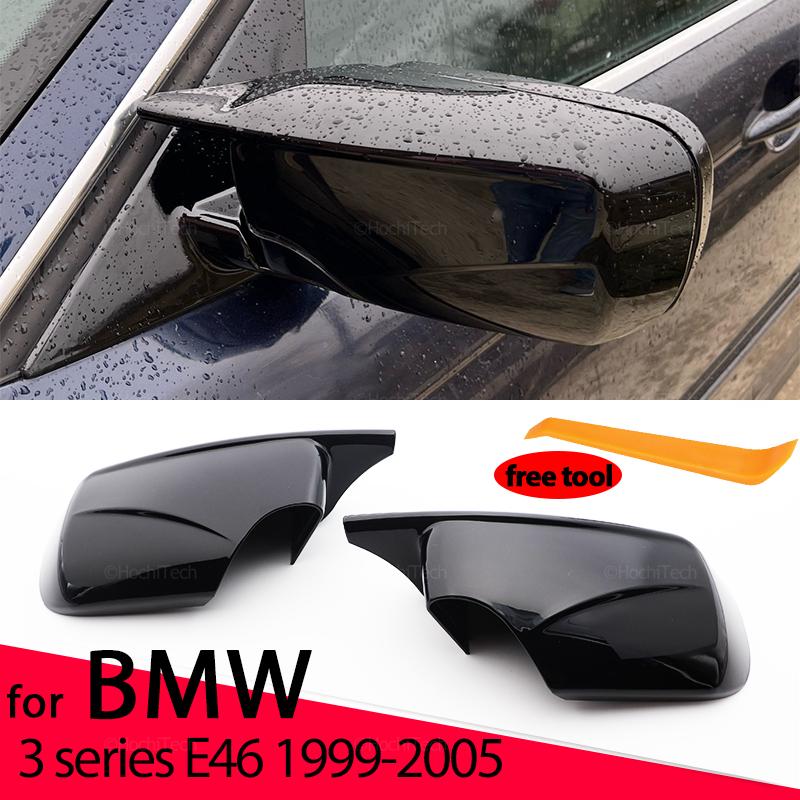2pcs Carbon Fiber Pattern Black Side Mirror Cover Caps Replacement for BMW E46 318i 318d 320d 320i 325i 328i 330d 330i 1998-2005