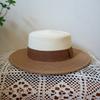 French Retro White Khaki Flat Top Top Top Hat Women'S Summer Sunshade Vacation Beach Sun Straw Hat Big Brim