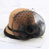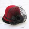 Autumn And Winter Woolen Hat Mesh Flower Women Versatile Basin Hat Bucket Hat British Retro Wedding Fashion Top Hat