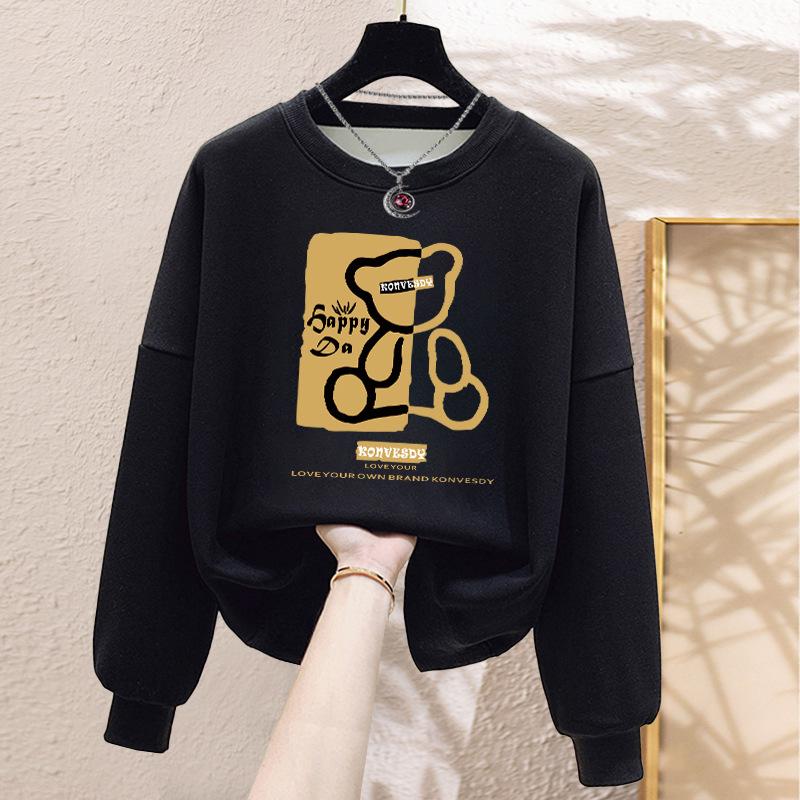 Niche Crew Neck Sweater Women's Loose Casual Simple Fashion Versatile Velvet Thickened Spring and Autumn Winter