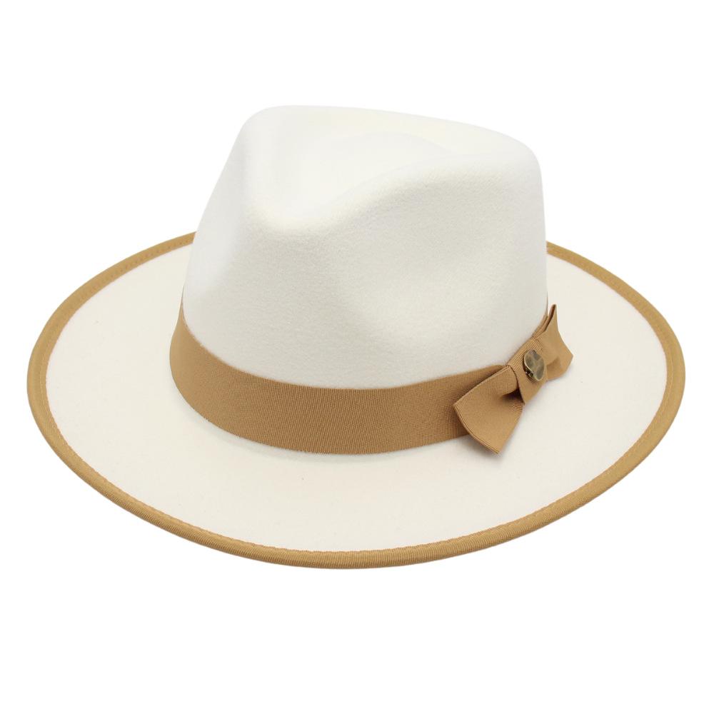 New Bow Top Hat Peach Heart Top Jazz Hat Men'S And Women'S Hemming Felt Hat Imitation Wool Woolen Hat Retro