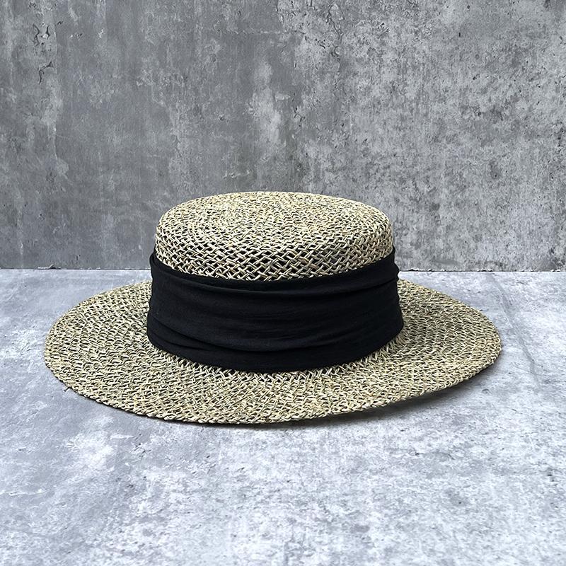 French Retro Salted Seaweed Hollow Woven Large Brim Flat Top Top Hat Men'S And Women'S Summer Outing Shading Straw Hat