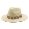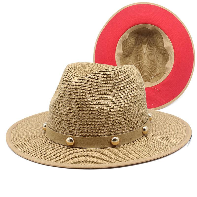 Ethnic Style Retro Red Background Color Matching Straw Hat Men'S And Women'S Sunshade, Sun Protection And Uv Protection Straw Woven Panama Top Hat