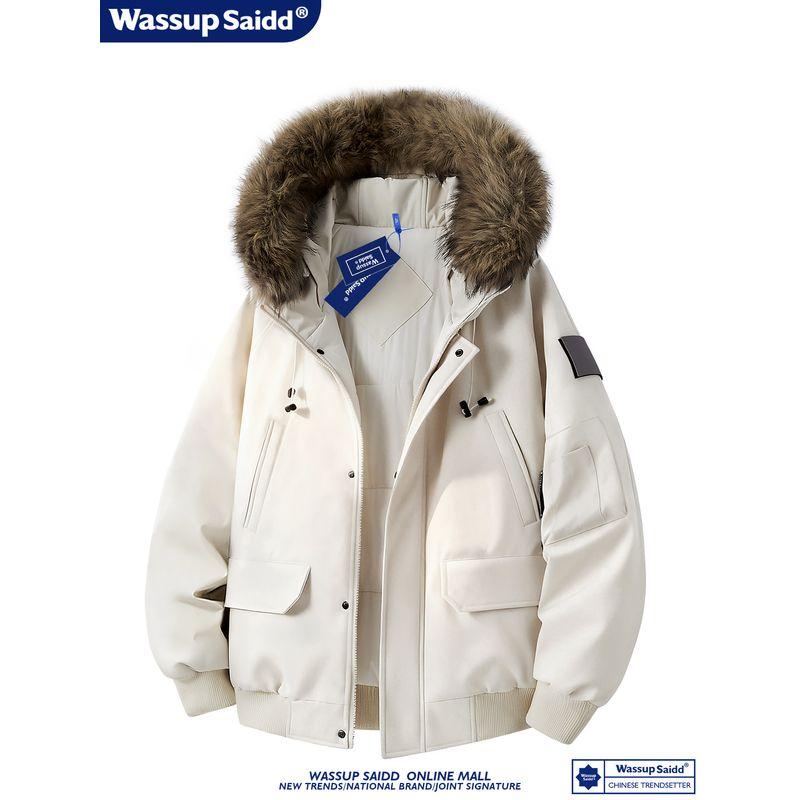 Wassup Saidd Fur Collar Hooded Cotton Coat for Men, Winter Windproof Thickened Warm Cotton Jacket for Women, Parka Style Trendy