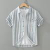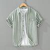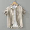 Fresh Breathable Color Matching Stripe Linen Short Sleeve Shirts Men's Summer Casual Half Sleeve Japan Fashion Retro Cotton and Linen Shirt