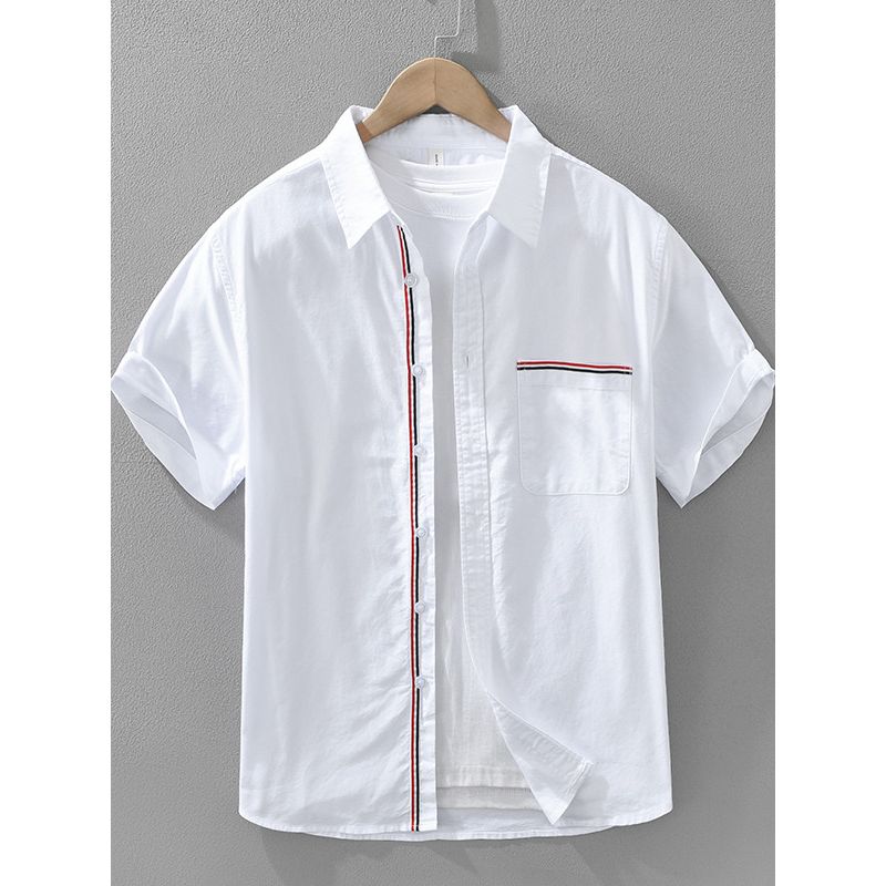 Summer Hong Kong TB Style Ribbon Pu Shuai Short Sleeve Shirts Men's Clothing Tokyo Fashion Brand Casual Shirt Pure Cotton Oxford New