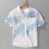 Summer Embroidery Gradient Over Print Short Sleeve Shirts Men's Cotton Hawaiian Advanced Casual Shirt 2025 New