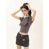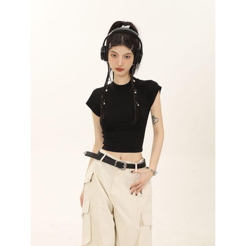 Shiyiyue Slim Fit Midriff-Baring Pure Color Short Sleeve T-Shirt