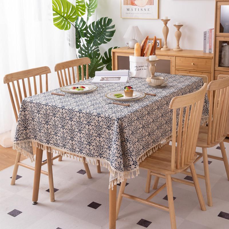Tablecloth Polyester Cotton Printed Newspaper Map Tassel Household Rectangle Dining Table Cloth Coffee Table