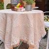 Retro Cotton Yarn Peach Heart Pattern Tablecloth French Simple Romantic Coffee Table Round Table Cover Picnic Cloth Table Cloth