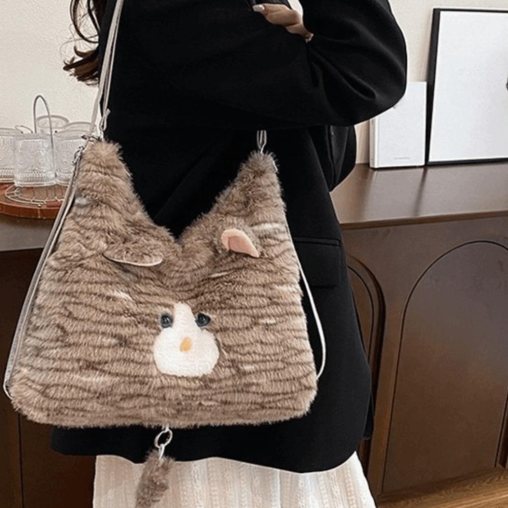 Large Capacity Furry School Bag Zipper Cartoon Daypack Cat Plush Backpack JK Uniform Accessories