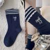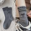 Bow Embroidered Socks Striped Lace Sweet Mid-Leg Socks Worn Outside Lace Pile Socks