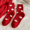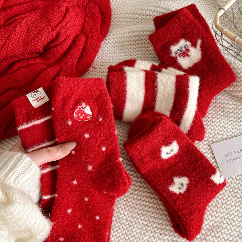 Thickened New Year'S Stockings, Red Bright Red Medium Tube Socks, Australian Velvet Cat Socks, Year Of The Horse Cartoon To Keep Warm In Winter