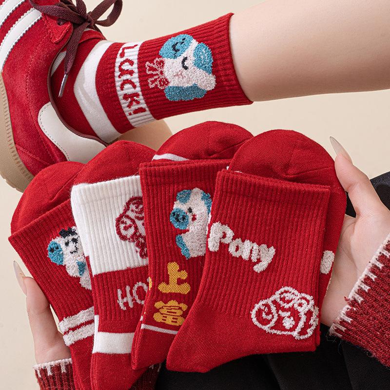 New Year'S Red Socks Year Of The Horse 2026 Medium Tube Socks Wedding Happy New Year Big Red Gift Box Socks