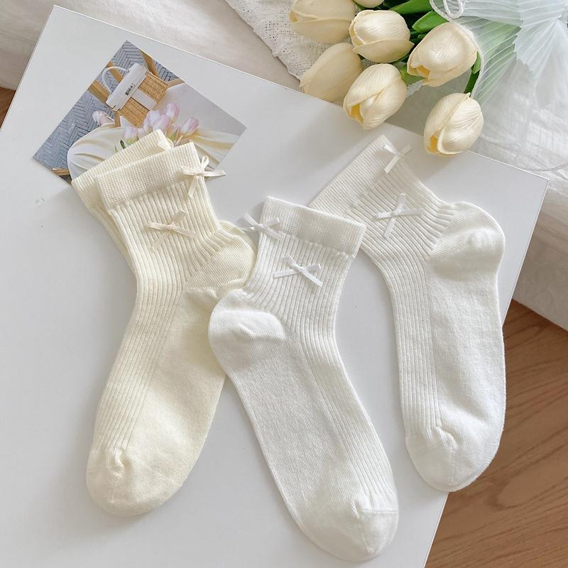 Mesh Breathable And Standardized Double Bow Solid Color Short Socks For Women Versatile White Thin Women'S Socks