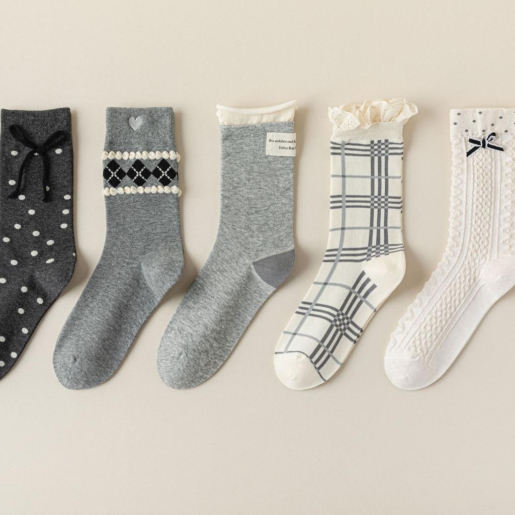 Early Autumn Polka Dot Bow Socks Medium Tube Socks Ballet Lace Medium Tube Socks
