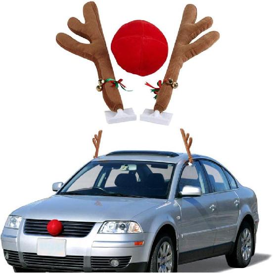 Christmas Car Reindeer Antlers And Nose Decorations Kit Vehicle Costume Plush Rudolf Red Nose Deer Antlers Auto Accessories