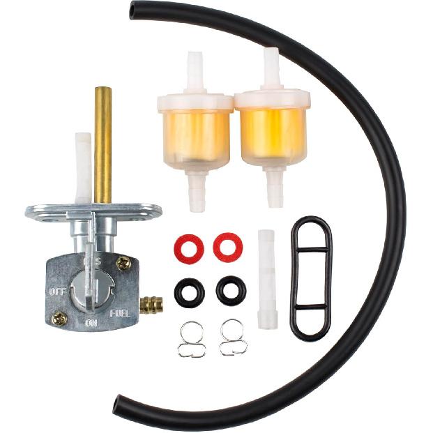 Package Include: 1 x fuel valve, 1 x 12inch fuel line, 2 x fuel filter, 2 x Spring Clips. You get including high quality pure rubber fuel line and fuel filter