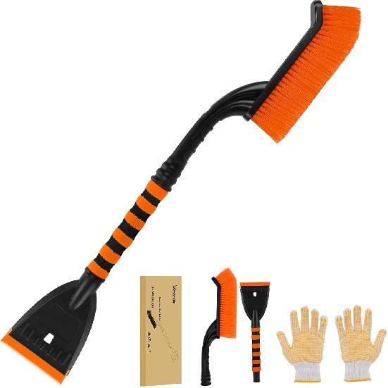 Car Snow Brush And Ice Scraper/26.8" Window Scraper Deicer For Car Windshield, 2 In 1 Ice Scrapers And Brushes With Non-Slip Gloves, Winter Car