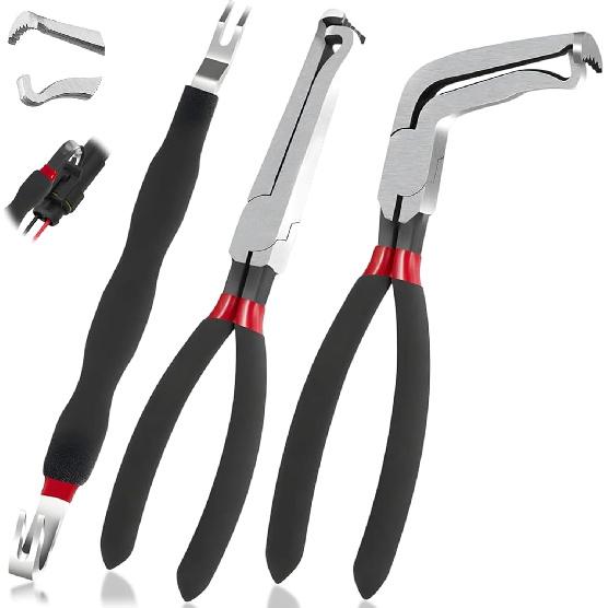 Package Content: This set includes a 3-piece automotive electrical connector pliers (1 pair of 60-degree angle pliers + 1 pair of straight nose pliers + 1 pair of double-ended connector separation tool). This tool set is designed for both professionals and automotive enthusiasts to ensure efficient removal of electrical connectors and terminal connections on all makes and models of vehicles, ensuring that you have the right tool for every job. Measuring 8 inches in length, it is compact and portable, and fits easily into a toolbox or vehicle toolkit for easy storage and emergency use.