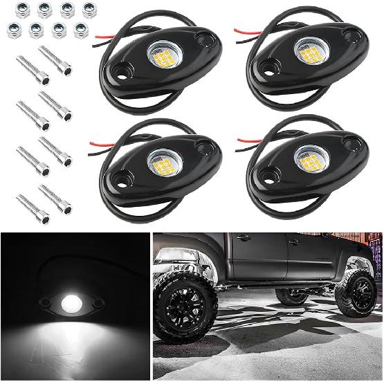 【Designed for Quality】: High quality aluminum alloy shell, with great corrosion resistance, light weight and high strength, easy to use. The working life of these rock lights is 30,000 hours, and it can maintain good working condition in various harsh environments. Whether driving in the desert, lake, or road full of gravel, it can perform well.