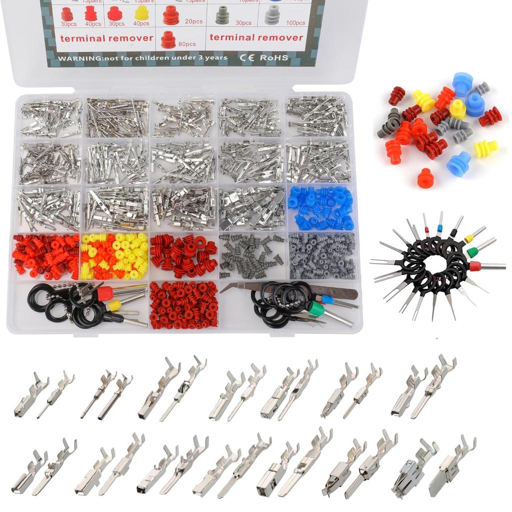 830Pcs 28Value Automotive Car Electrical Terminal P Auto Connectors Kit Metri-Pack P Kit Male&Female Wire Connector Terminal Wire Harness Wiring