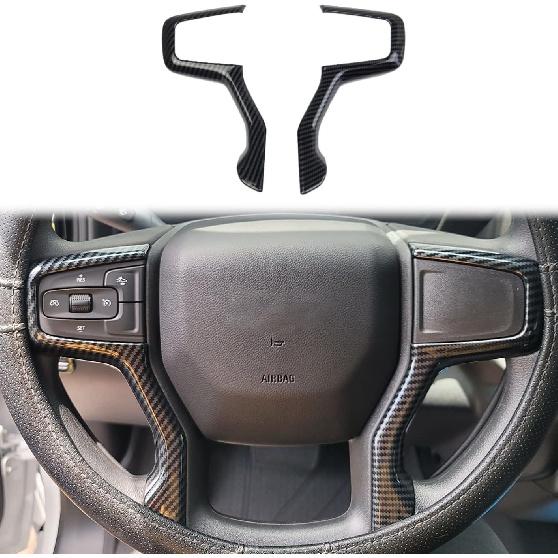 Carbon Fiber Steering Wheel Cover Molding Trims Accessoriess For -2025 Chevy Silverado Blazer -2024 Tahoe Suburban (Side Trim)