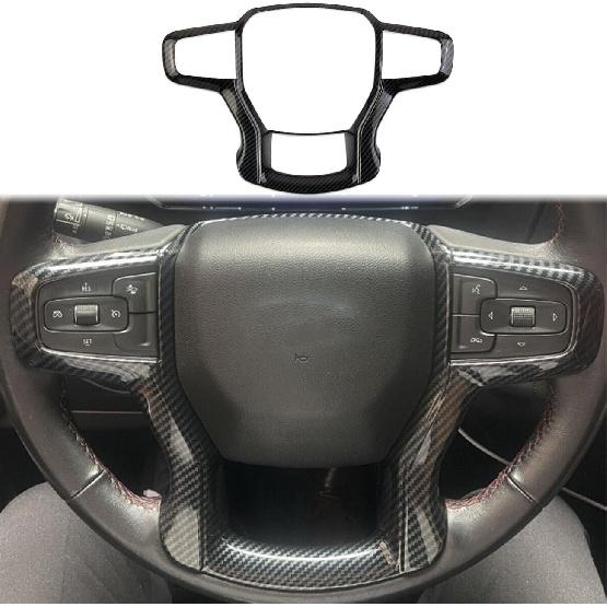 Carbon Fiber Steering Wheel Cover Molding Trims Accessoriess For -2025 Chevy Silverado Blazer -2024 Tahoe Suburban (Full Cover)