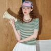 Coolhut Striped Color-Blocked Round Neck Slim-Fit Tencel Short-Sleeve Versatile Short Top 2025 Summer Women's Knitwear