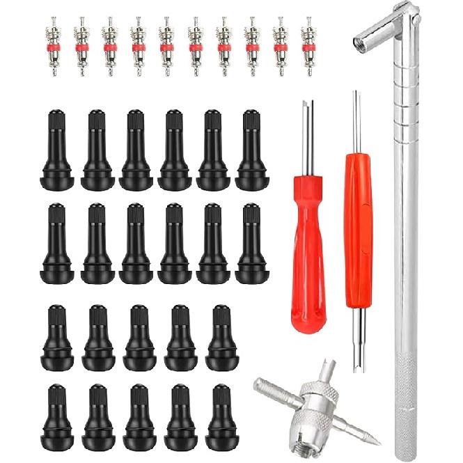 Tire Valve Stem Puller Tools Set,Includes Valve Stem Cores,4 Way Valve Core Remover,Single Head Tire Valve Core Remover,Valve Stem Taller, Tire