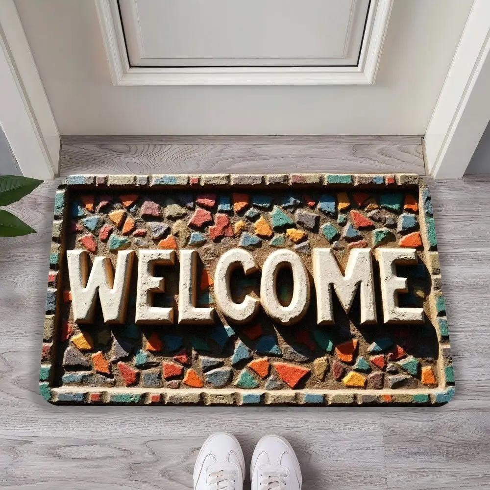 Welcome Home Door Mats Dust-proof and Easy To Wash Door Mats Simple Care for Retro Home Decoration