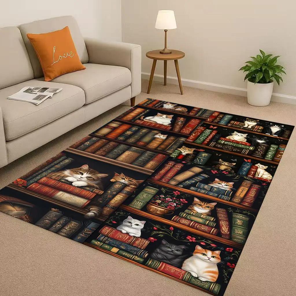 Magic Book Library Bookshelf Living Room Non-Slip Area Rug Soft Carpet for Bedroom Sofa Easy Clean Home Doormat Playmat Mat