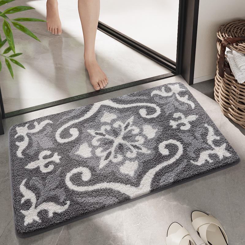 Simple Geometric Bath Mats Strong Water-absorbent Anti-slip Carpet Flocked Home Bathroom Quick-drying Foot Mat