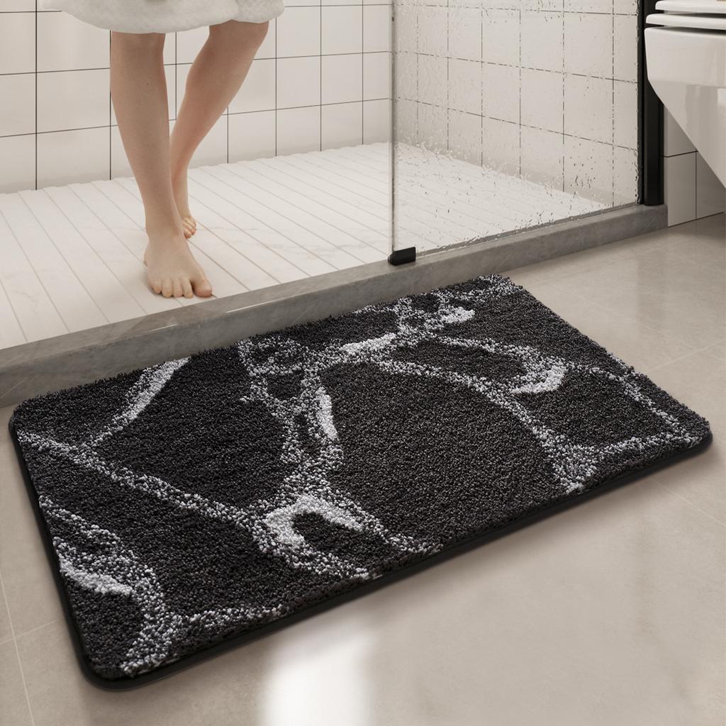 Simple and Stylish Bath Mat Home Decoration Bathroom Rug Thickened Flocking Water-absorbent and Non-slip Floor Mat