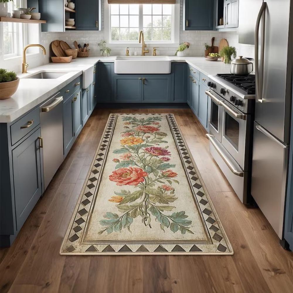 Floral Pattern Kitchen Carpet Mat Rug - Colorful Flower Design Home Decoration for Living Room Floor Mat Carpets for Living Room
