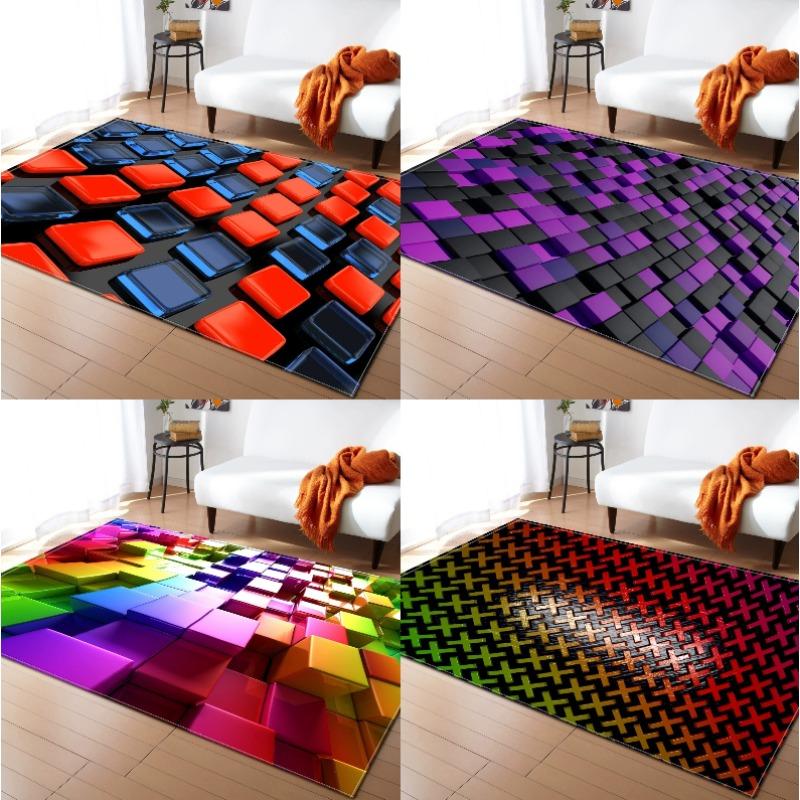 Living Room Earth 3D Visual Color Geometric Block Floor Mat Bedroom Living Room Kitchen Tea Table Anti Slip Rug Home Decoration